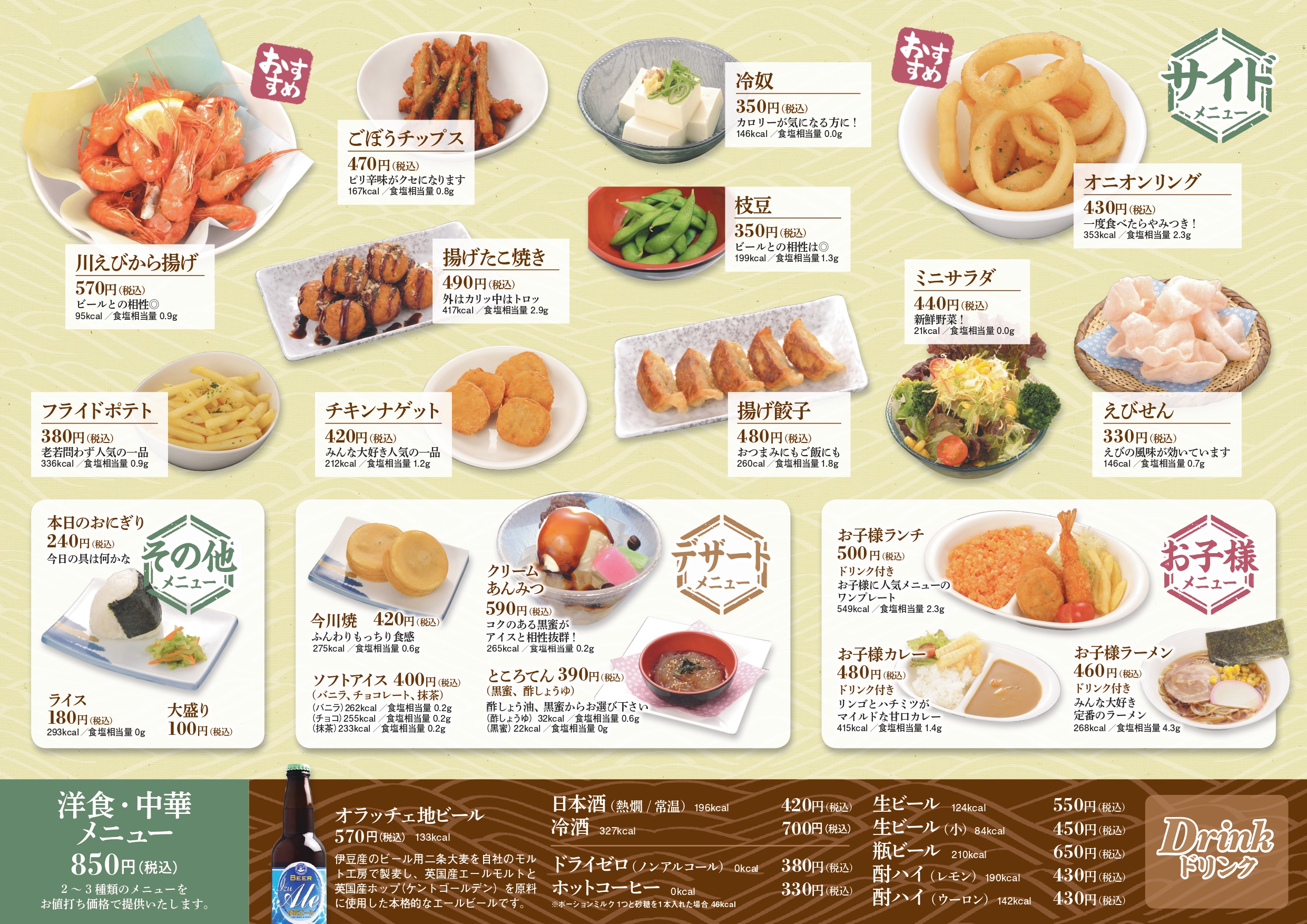 ※Ⓑはグランドメニュー・サイドメニューから各1品