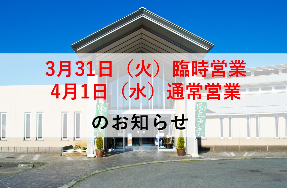 なお、4月1日(水)は通常営業となります。