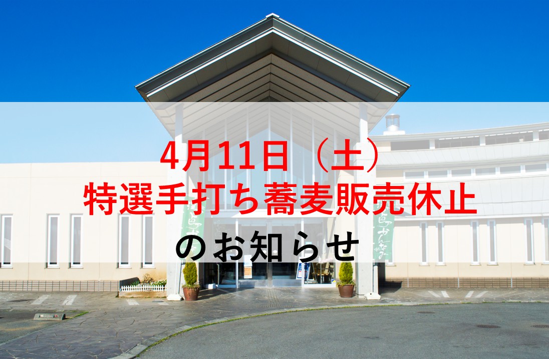誠に勝手ながら、本日4月11日(土)の手打ち蕎麦の販売は、諸般の事情により休止とさせていただきます。 楽しみにされていたお客様には多大なるご迷惑をおかけし、深くお詫び申し上げます。