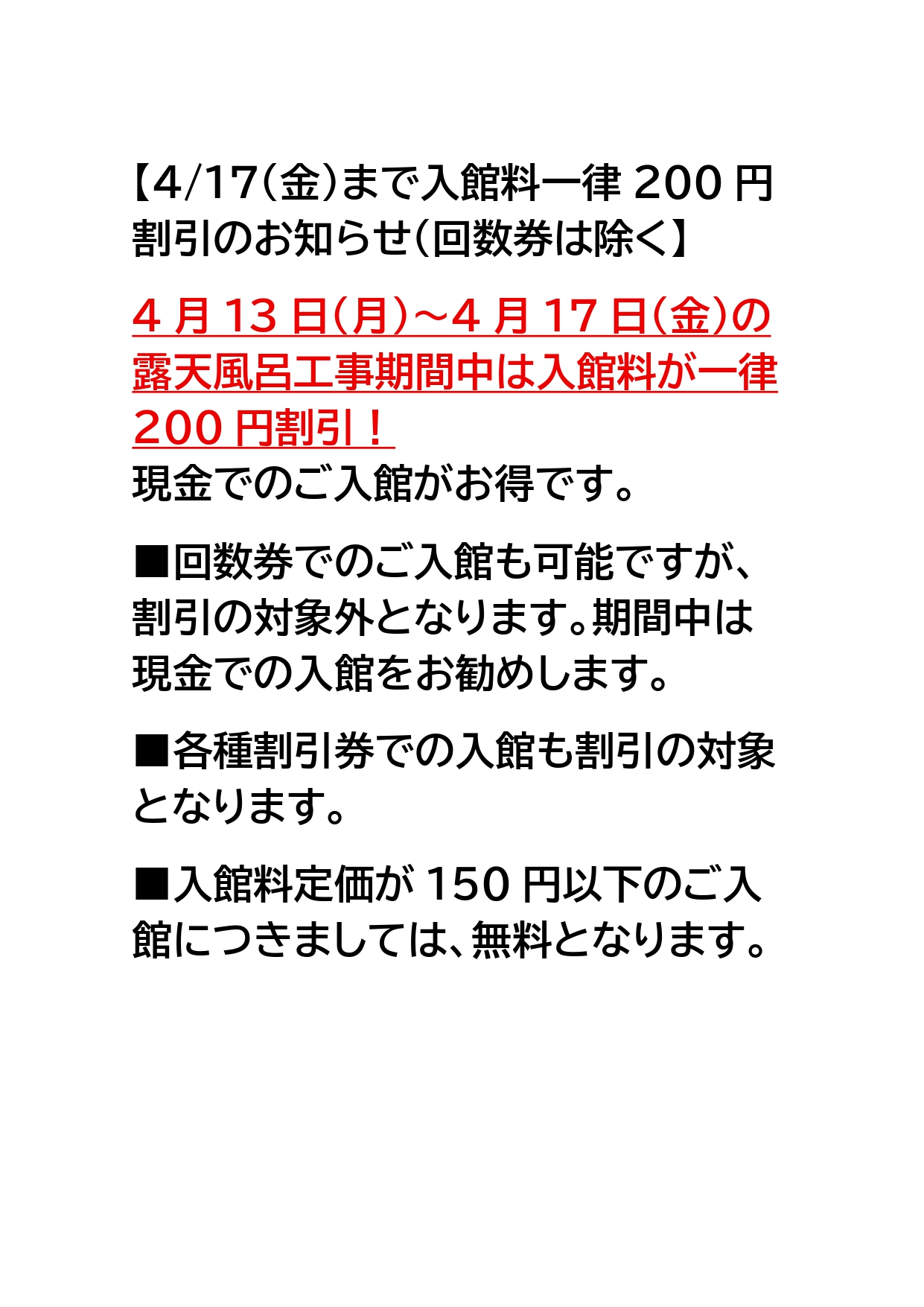 【4月17日(金)まで入館料一律200円割引のお知らせ】